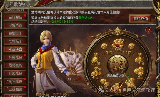 从新区开放的第二周起,每周三与周六,即可开启灵符转盘活动。在活动期间进行最多10次的转盘操作,每次转盘所消耗的金额可不是固定不变的,而是呈逐步递增的。
