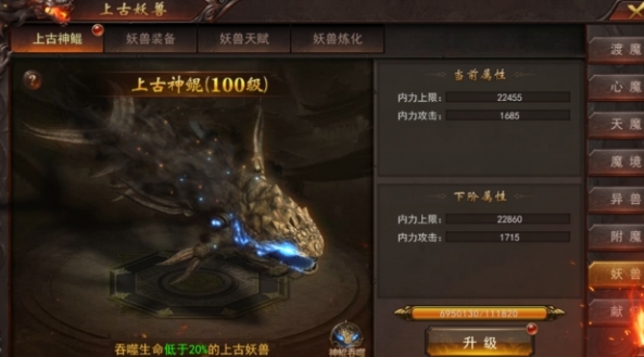 玩家需要进入心魔大陆后,点击上古妖兽NPC,即可进入妖兽的藏身之所。这里仿佛穿越了时空,回到了那个妖兽横行的年代。