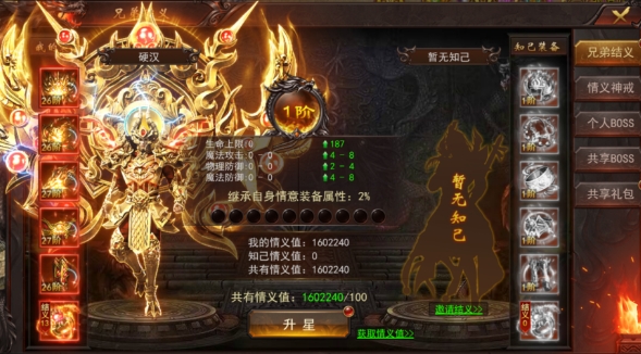 结义等级的提升不仅能增强兄弟间的情谊,还能带来显著的属性加成。随着结义等级的提高,玩家将获得更高的血量上限、攻击力、防御力等属性提升,极大地增强战斗力。