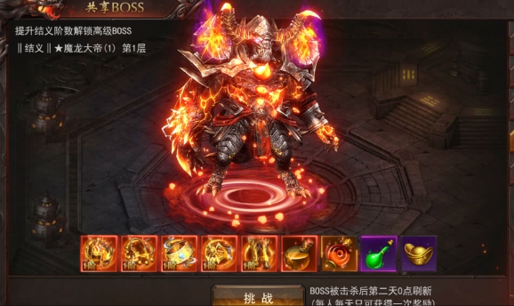 挑战次数:共享BOSS每天可以挑战一次,是获取情义装备的主要途径。此外,玩家每天还有五次机会挑战个人BOSS,虽然次数有限,但也有机会获得意外的惊喜。