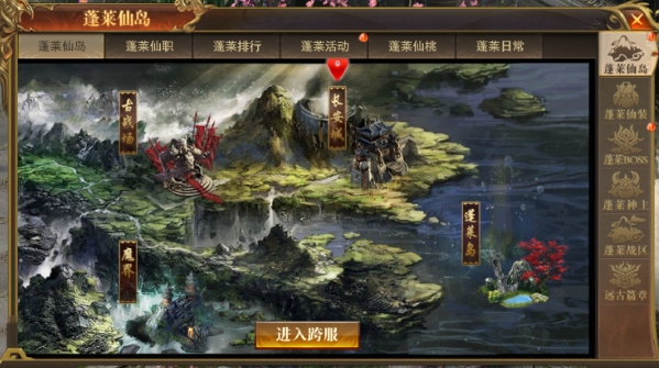 玩家可以通过游戏内的跨服战场进入蓬莱仙岛,参与各种活动和挑战。