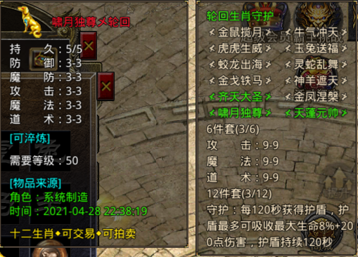 集齐一套生肖可获得冰冻神力,攻击时冰冻目标玩家。