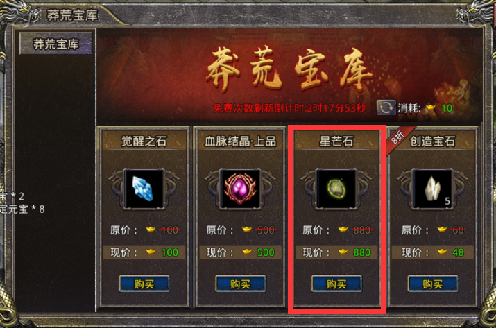 4.开服第二个周六会开启莽荒宝库,在其中刷新也能购买星芒石