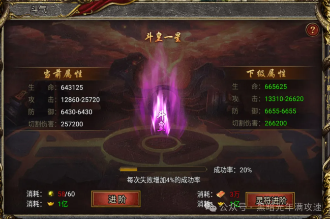 在我们升级斗气时,会有一定几率失败,失败会增加下次升级的成功率,进阶成功后附加的成功率清零。
