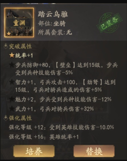 进阶效果:基础攻防、步兵抗性提升,后期可以通过进阶玉进一步强化。