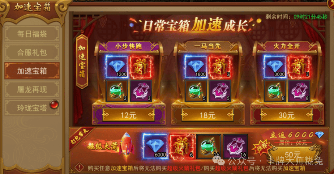 前期幻境boss打一遍就可以,主要打个图鉴,增加一下boss爆率,等跨服幻境开了之后,再去用体力瓶打,因为前期boss不会掉落什么好东西的,没必要一直浪费体力。第三点:就是充值送的,充得多送的其实也很多,很多玩家根本用不完。