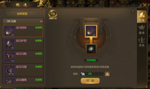 新手必须先集齐全套的卢马装备,才能解锁更高等级的打造权限。一步一个脚印,别想着跳过基础直接做赤兔,系统不允许。