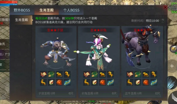 最基础的获取方式——点击右上角【BOSS】找到【生肖BOSS】,每日10点开启【生肖殿堂】地图。