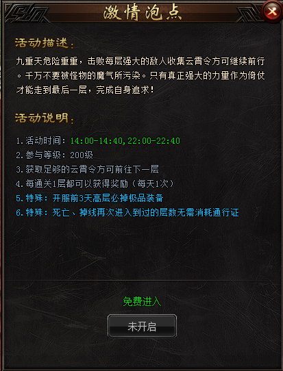活动期间,泡点地图内PK不红名、装备不掉落,可尽情享受激情PK。