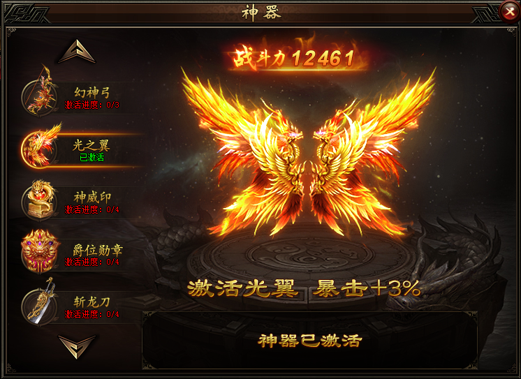 收集神器碎片可合成神器,神器可提供属性并解锁特殊功能。