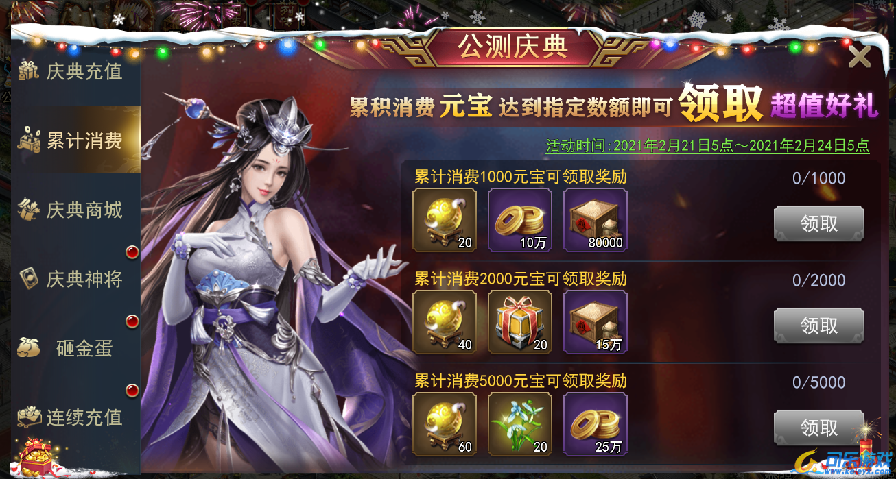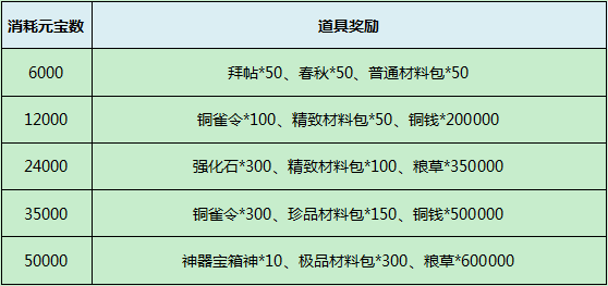 l 活动内容:活动期间内消耗元宝到指定数量后,即可领取奖励