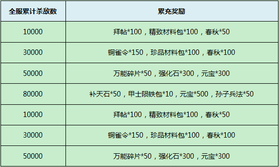 l 活动内容:攻城中累计杀敌到指定数量后,即可领取对应奖励