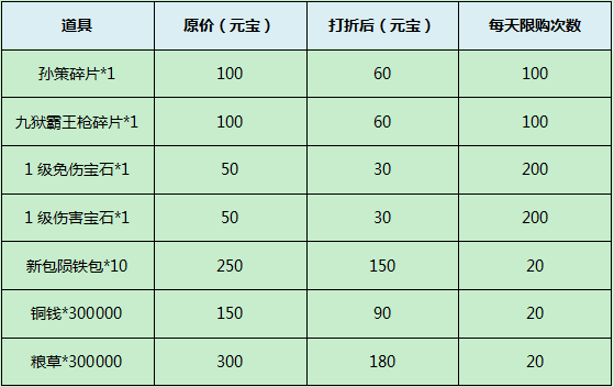l 活动内容:活动期间内指定道具开启超低折扣,每日售完为止。