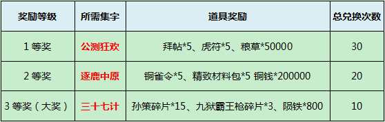 l 活动内容:活动期间内集齐指定文字,即可兑换奖励