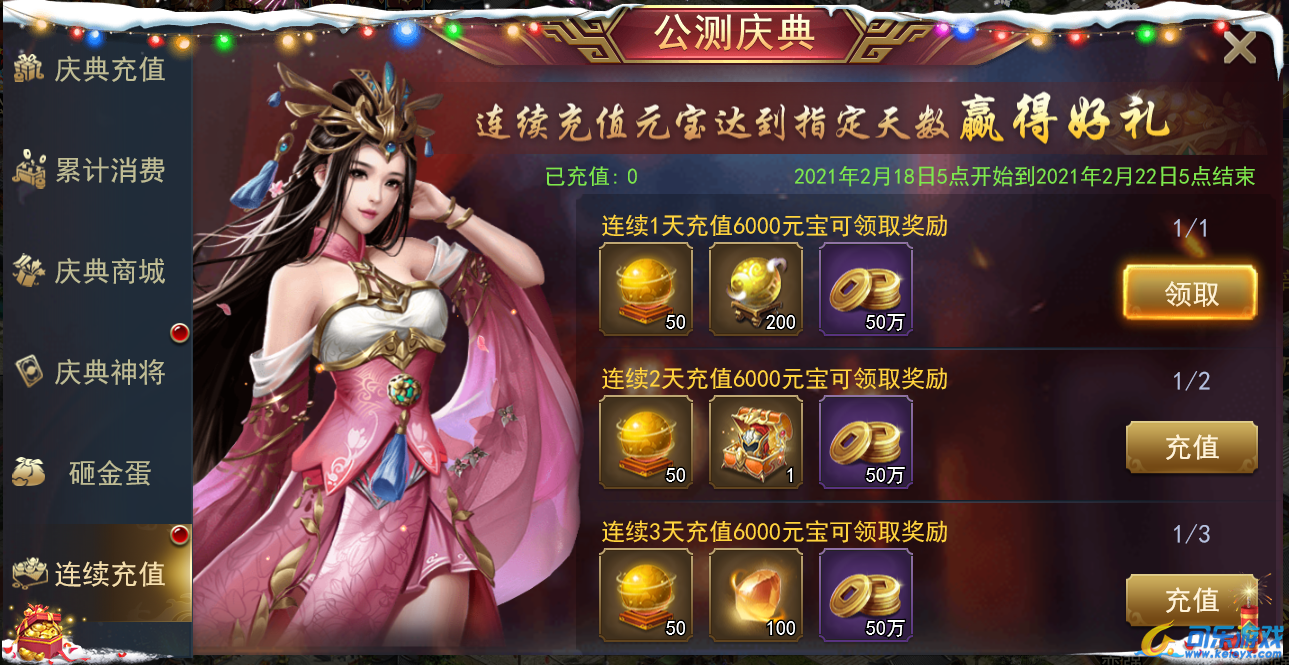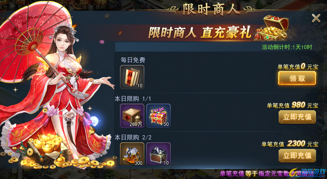 l 活动内容:每日累计充值到指定元宝后,即可领取累充奖励!