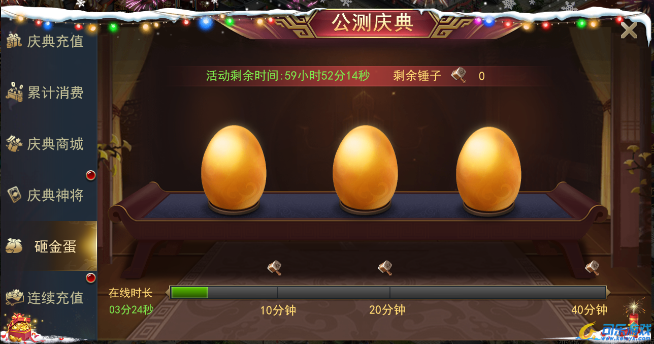 l 活动内容:活动期间内,在线达到指定时间即可砸金蛋,随机开出超多道具
