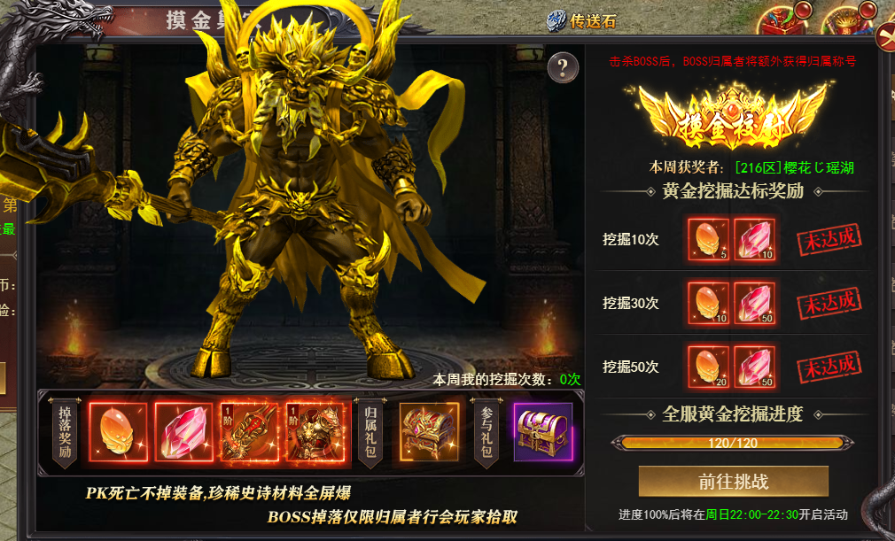 2、全服黄金挖掘达到一定次数可激活黄金巢穴
