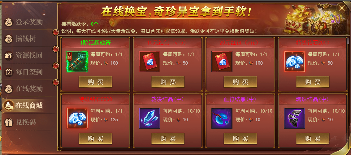2、活跃令牌可以在商城兑换活跃战符装备,红包,钻石。