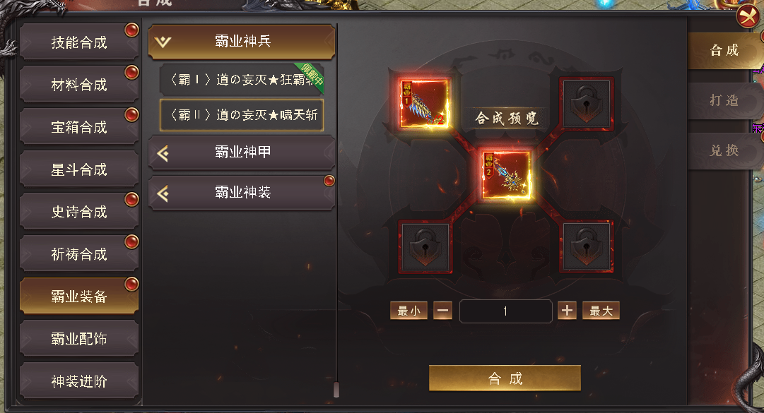 增加合成按钮,所有材料、装备、神装合成均集中在合成完成
