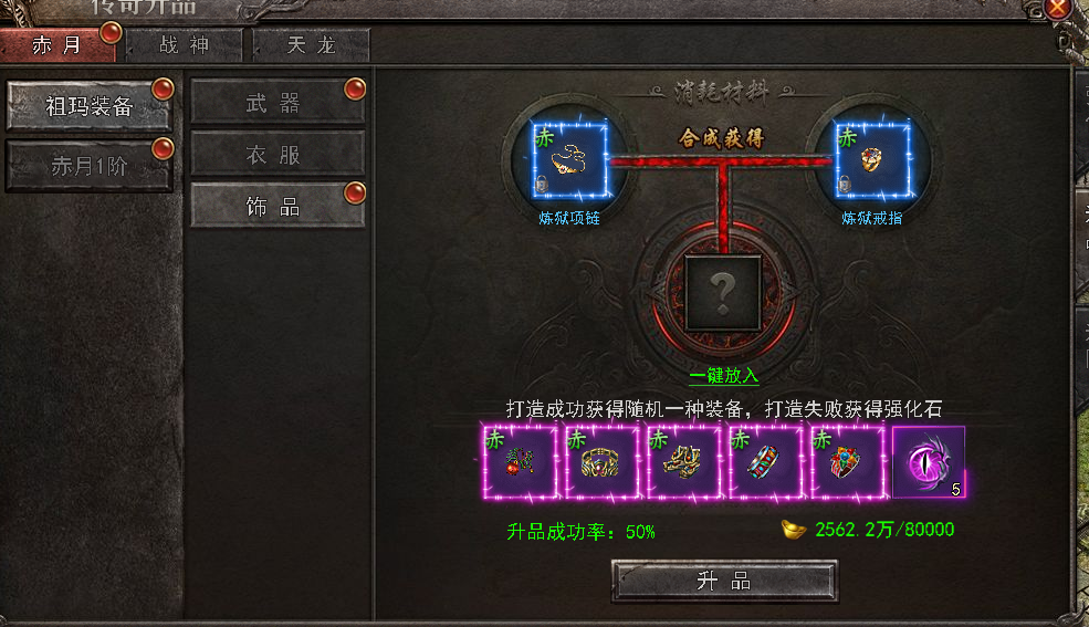 沃玛装备可升品为祖玛装备,祖玛装备可升品为赤月装备