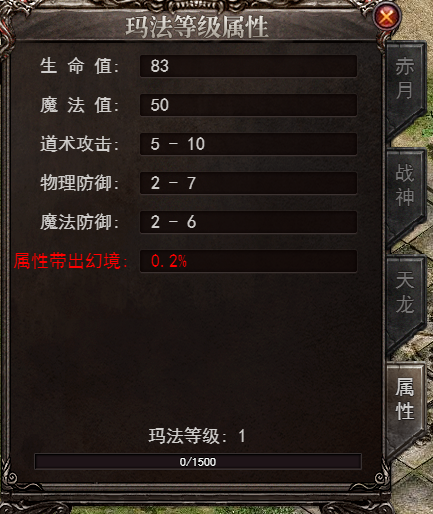 玛法等级增加一定基础属性和带出幻境属性百分比。