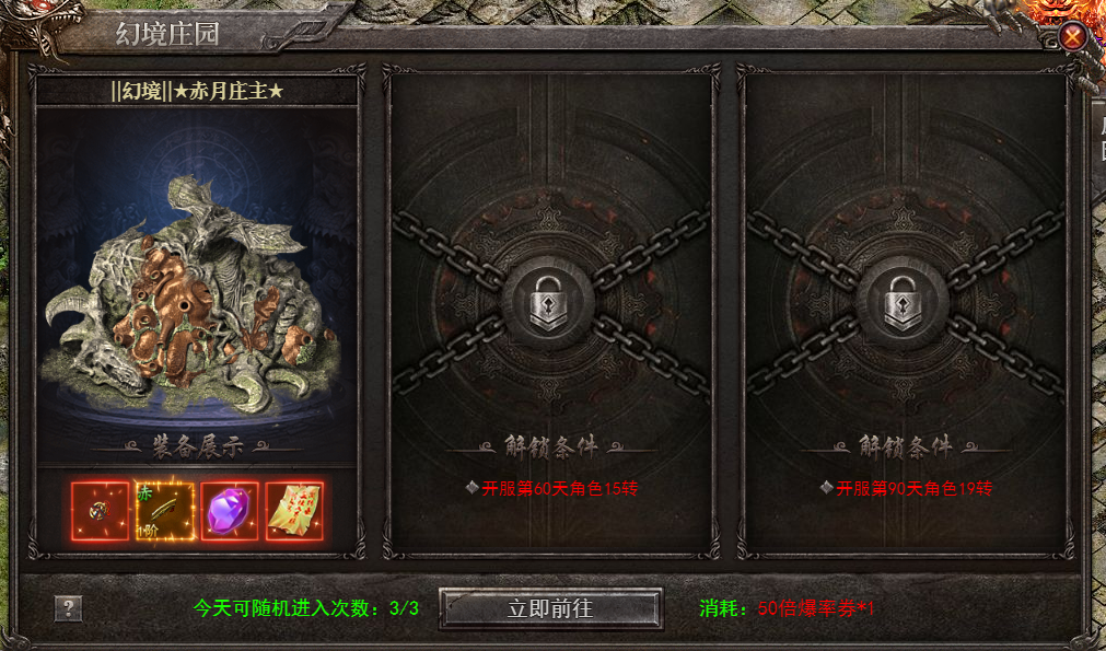 魔龙血域:开服60天15转,穿戴全套3阶赤月套装可进入,掉落战神以及战神以下装备