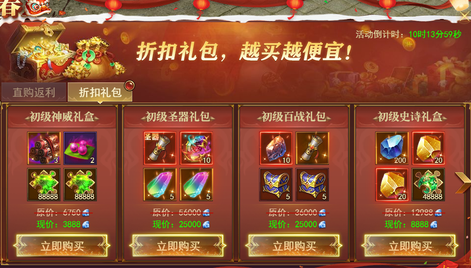 活动期间钻石等各种道具,超高返利、超低折扣,越买越便宜!