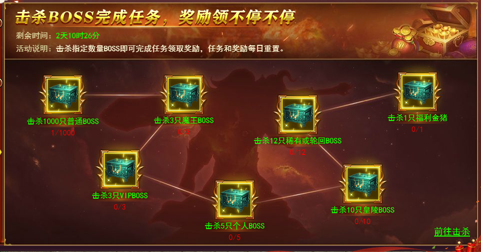 活动期间每天完成指定任务要求,即可获得除魔礼包,任务和奖励每日重置。