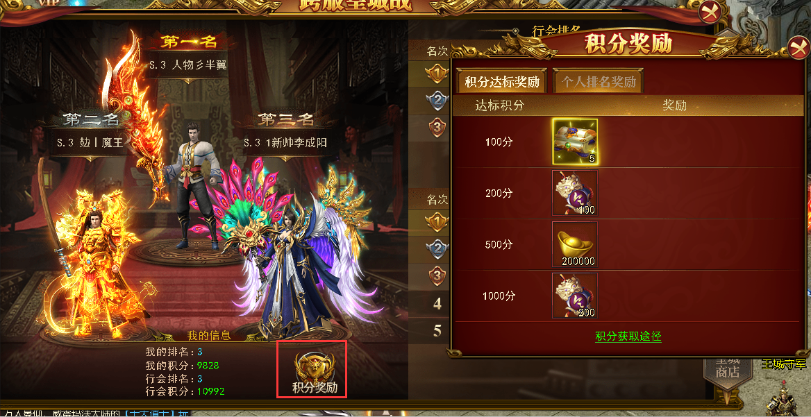 4.活动期间,个人积分达到指定要求,即可领取对应的积分达标奖励。活动结束之后,根据玩家个人排名发放对应名次的奖励。
