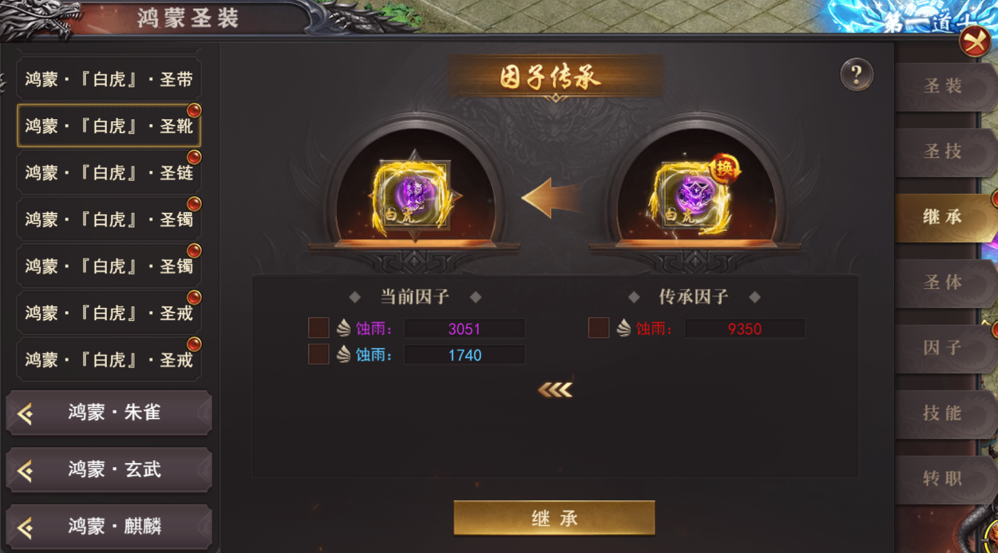 (3)圣装鸿蒙因子最大条数—青龙:1条、白虎:2条、朱雀:3条、玄武:4条、麒麟:5条