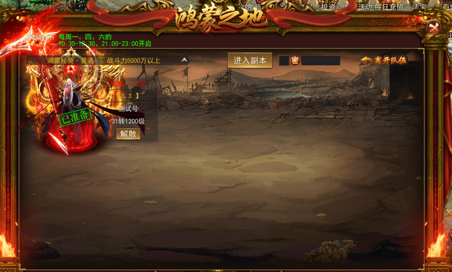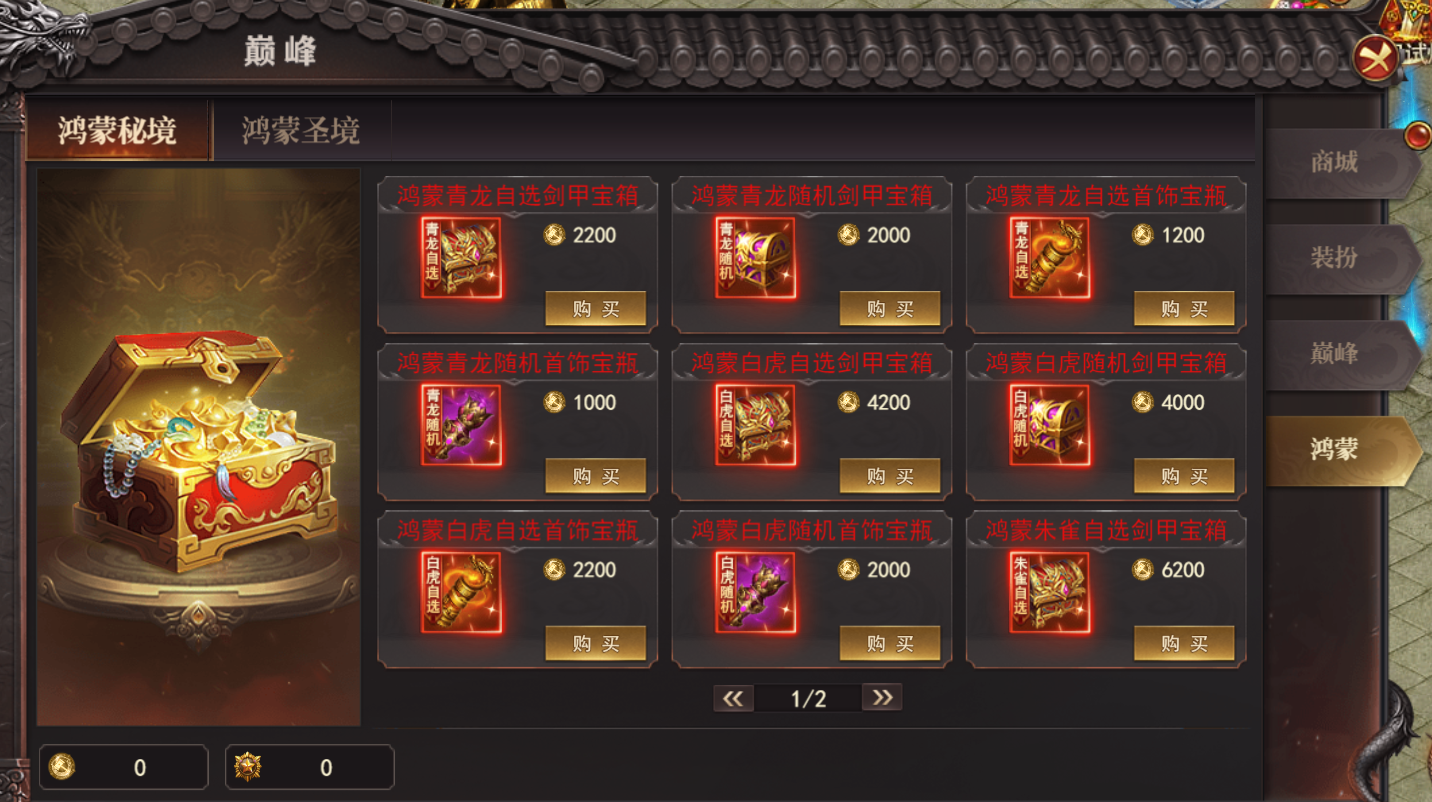 (1)鸿蒙秘境:开服90天开启(鸿蒙幻境/鸿蒙圣境—敬请期待)