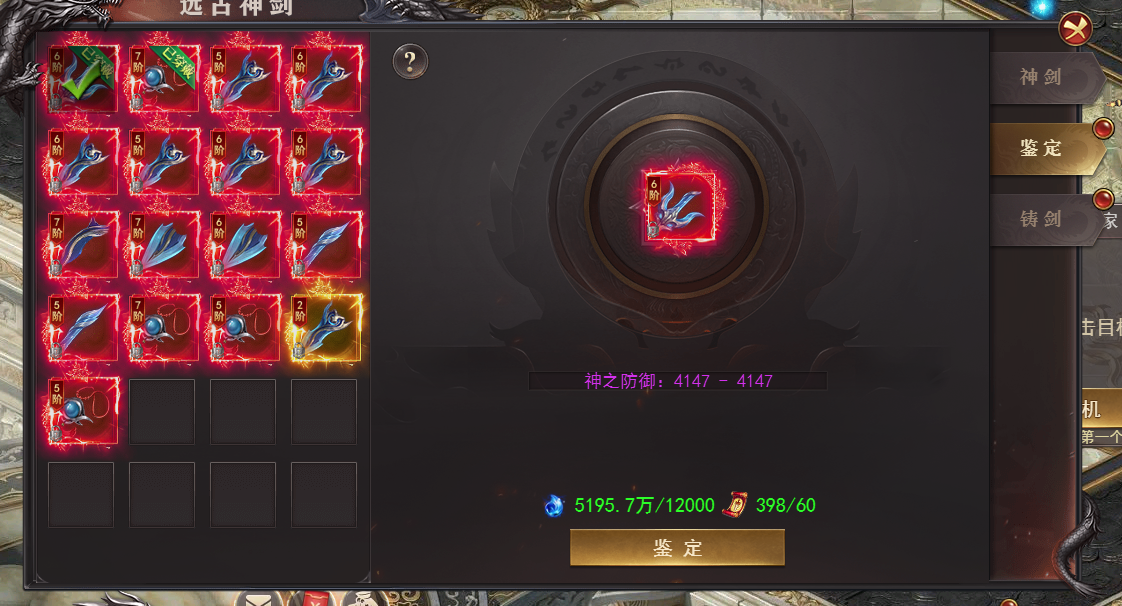 (5)神剑品级越高可鉴定的属性条数越多,最高可鉴定3条属性