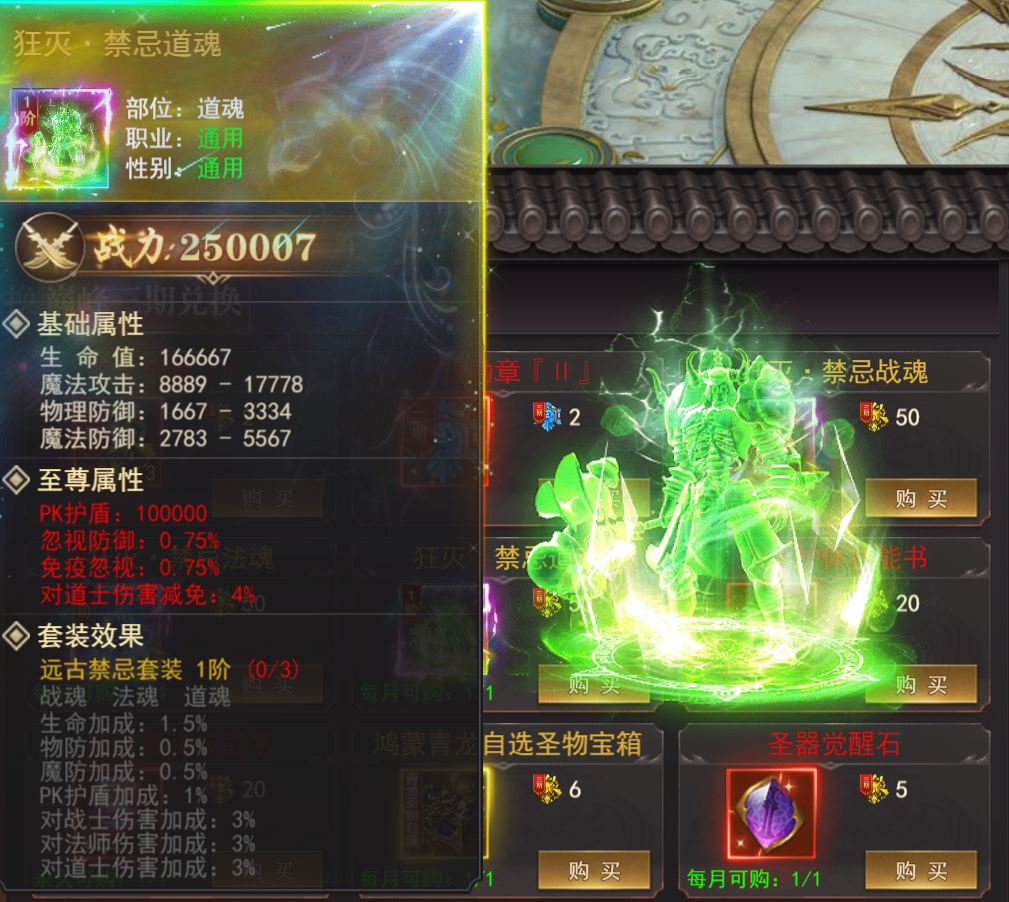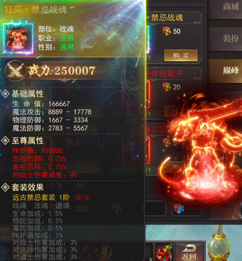 1.新增巅峰商城兑换道具(专属禁忌装备:战魂/道魂/法魂)