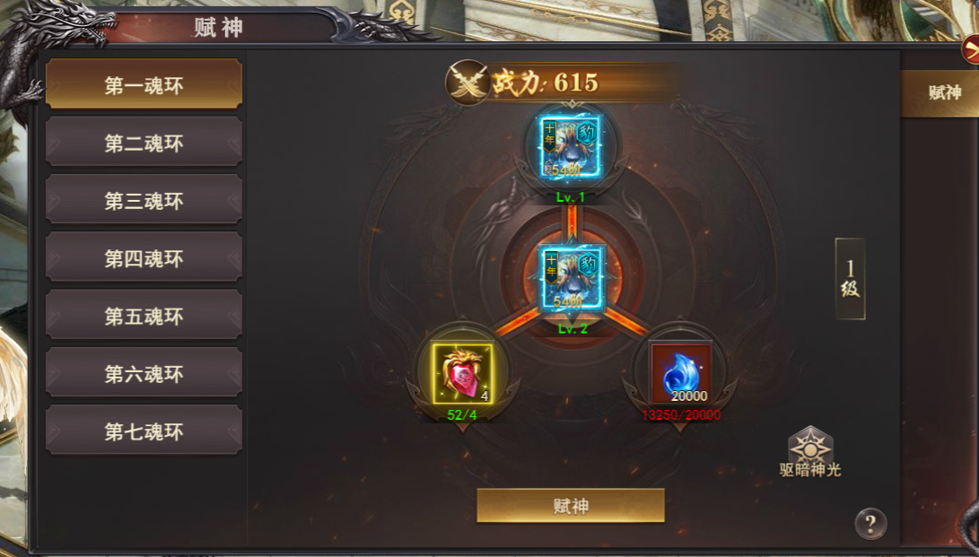 (2)需要对应槽位穿戴魂环才可进行赋神,赋神只对穿戴中的魂环生效