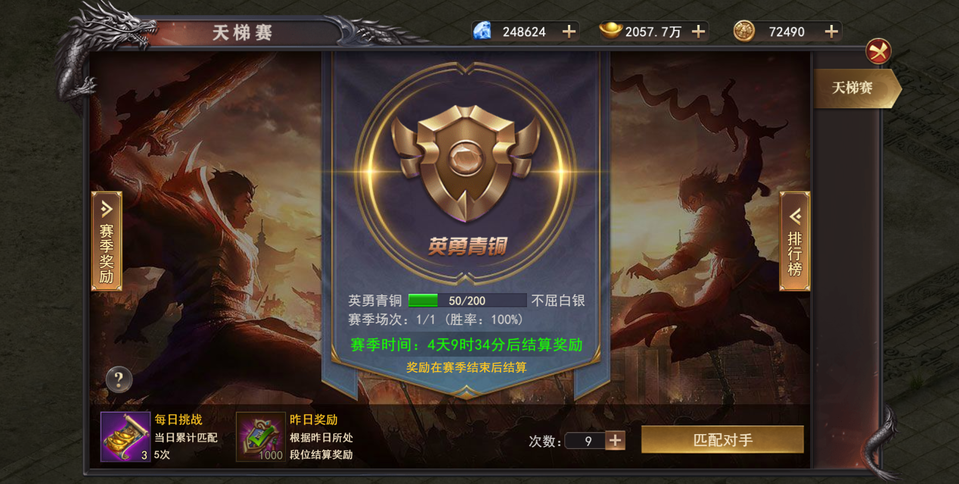 2.赛季开启期间,玩家匹配对手进行挑战,挑战成功失败都可获得积分奖励。