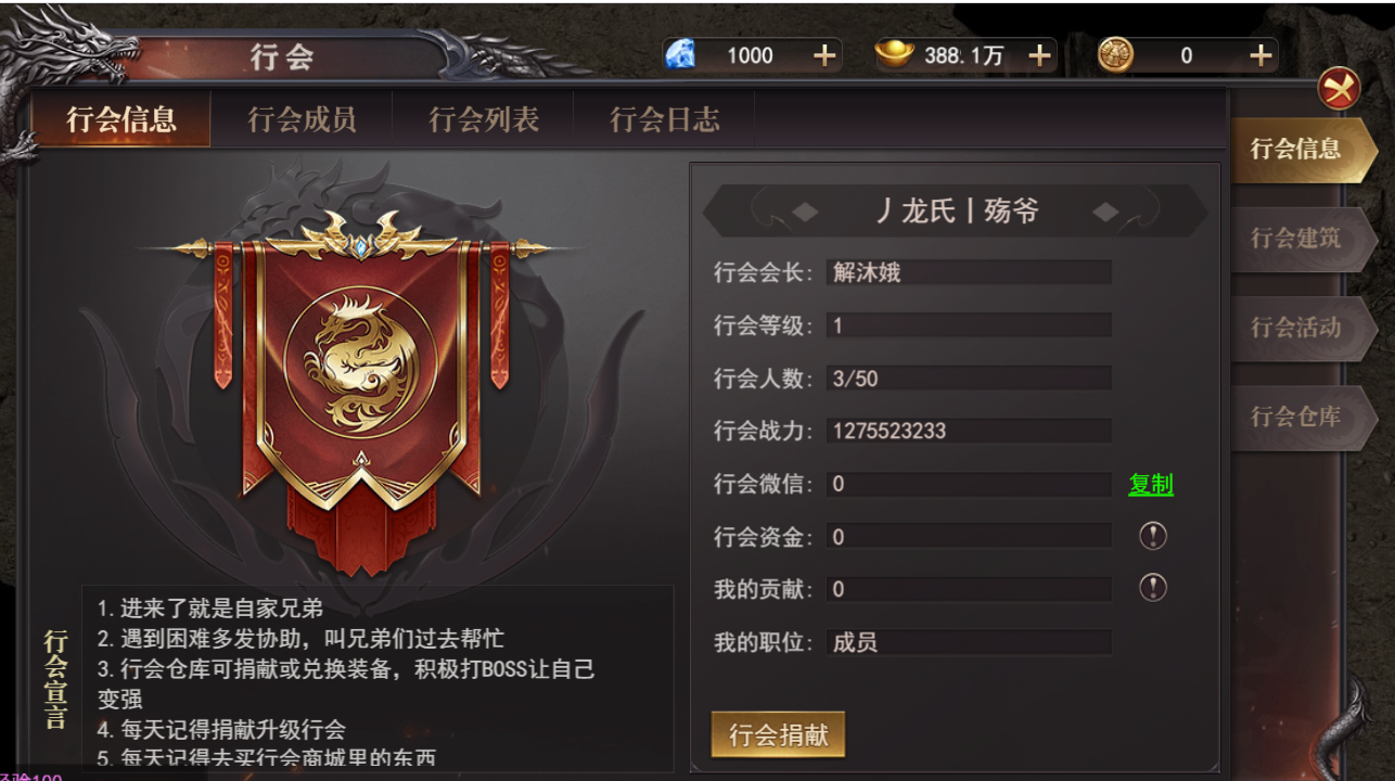 行会系统开启后玩家可创立行会,邀请各种大神组建一个强大的行会,一起击杀BOSS参与沙城争霸活动
