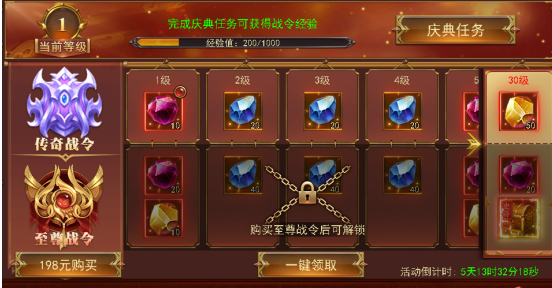 活动期间开放庆典战力,大量史诗强化话,更可购买高级战令,史诗剑甲轻松拿走