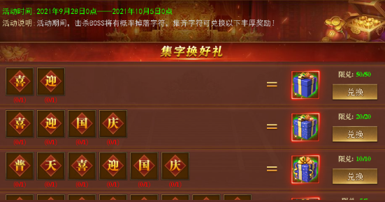 活动期间击杀任意boss均可概率掉落庆典文字,收集文字可兑换礼包