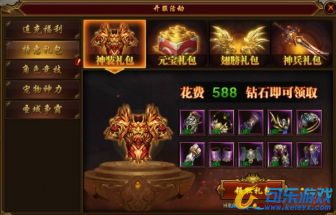 活动内容:活动期间,玩家可以花费钻石购买礼包,可以快速提升装备、宠物、翅膀。