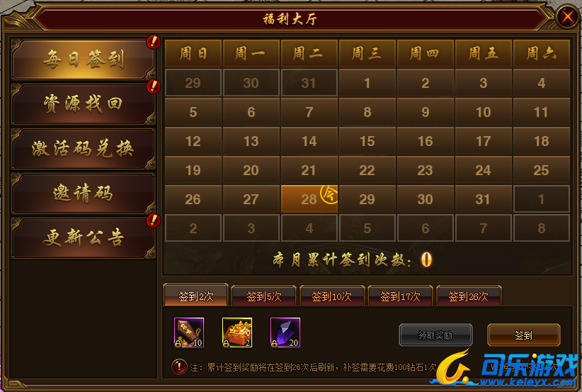 福利大厅中是领取游戏内基础奖励的系统,包括:每日签到、资源找回、激活码兑换、邀请码、更新公告
