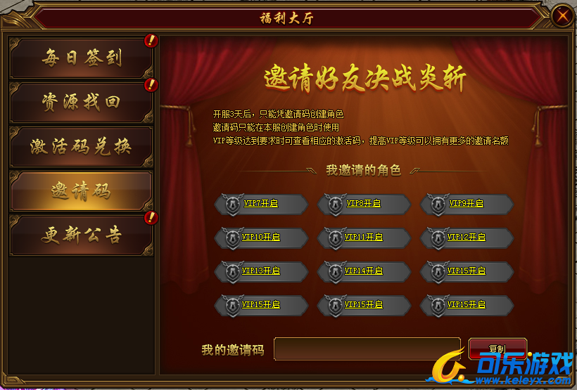 进入开服3天后的服务器,需要使用当前服的邀请码才可以进入!