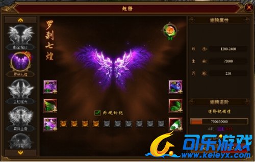 翅膀系统可以为角色提供攻击、防御、生命值、闪避、伤害加深等属性;属性多样和强悍是翅膀的属性特点