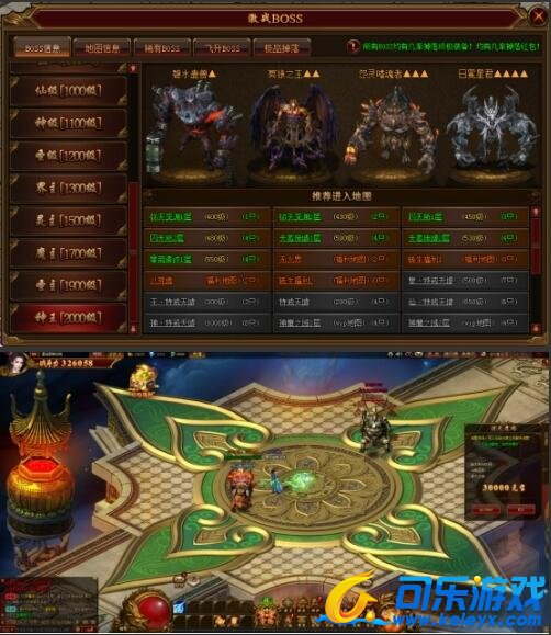 激战BOSS中记录着游戏中所有怪物的装备、位置、数量等信息,可以快速方便的找到想挑战的怪物,点击该怪物的位置还可以传送到该怪物所在地图!