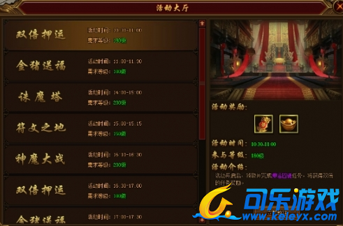 定时活动中显示当天所有可以参加的活动,并详细显示了活动的时间、参与要求、奖励和活动规则!