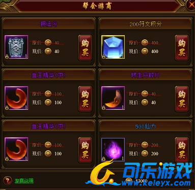帮会游商:帮会2级可解锁帮会游商,帮会游商在帮会驻地NPC处可打开游商面板消耗个人贡献来购买道具,帮会等级越高帮会游商的道具会越好,帮会游商每6小时刷新一次道具