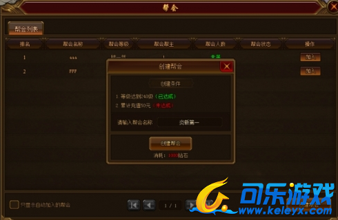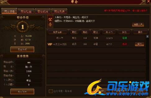 加入帮会:玩家也可以选择申请加入一个帮会,成功加入后默认成为成员,只有未加入帮会的玩家才可以创建和加入帮会