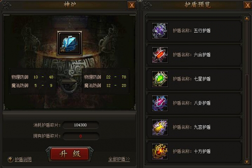 低等级的护盾可通过消耗护盾碎片进行升级,进阶为更高等级的护盾。拥有高等级护盾,再也不担心被别人一刀秒杀了。