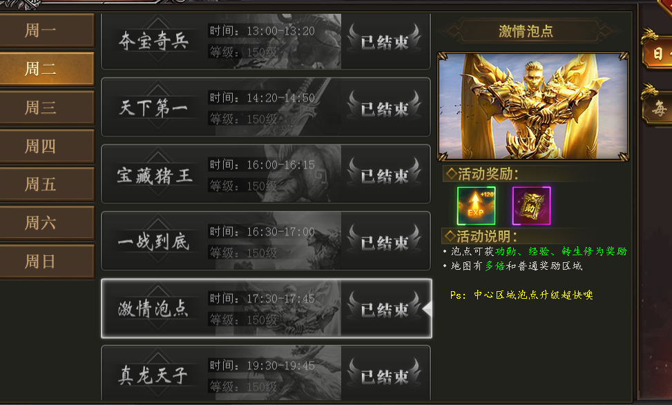 活动说明:角色150级以上可参与,前往修炼之城活动地图上挂机即可获得大量功勋章和经验奖励。