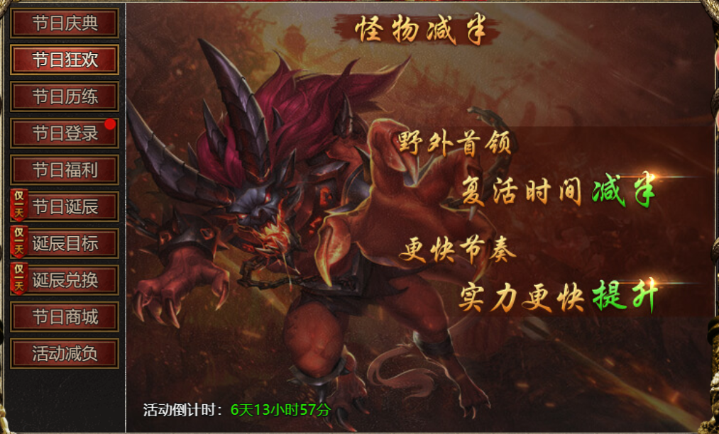 【活动内容】:活动期间,野外BOSS复活时间减半
