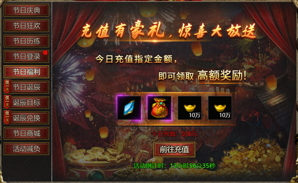 【活动内容】:活动期间:每日充值指定金额,即可领取高额奖励!